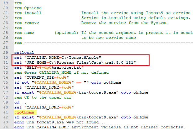 set "CATALINA_HOME=C:\Tomcat9Apple"