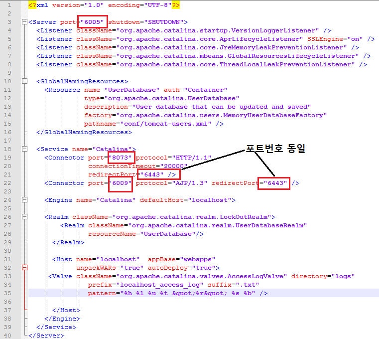 Conf/server.xml 포트 번호 설정.