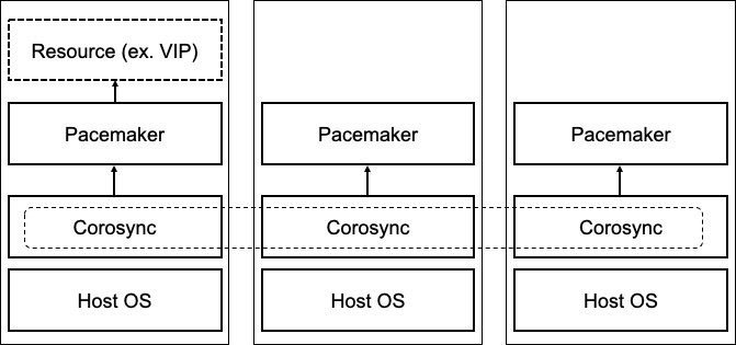 대부분의 pacemaker 레퍼런스는 자세한 개념을 설명해주지 않아 여러모로 삽질을 많이 했다. 일반적으로 pacemaker를 사용할 때는 corosync라는 도구를 함께 쓰는데, 그 역할은 아래와 같다.