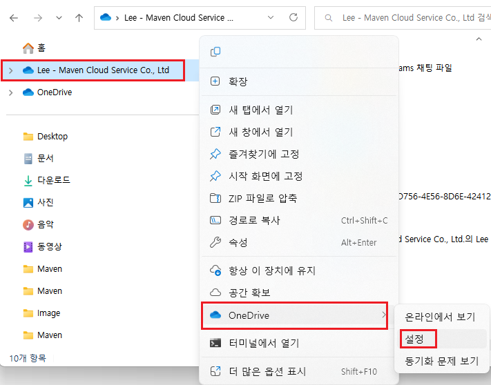 1. OneDrive 폴더에 설정 으로 이동.