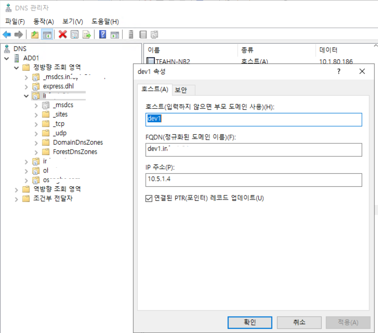 on-premise 서버의 DNS 서비스에서 Azure 의 VM 머신의 IP 를 추가해줘야 한다.