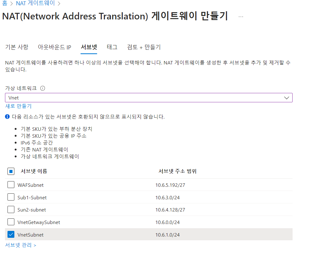 -서브넷 설정(VM 머신이 있는)