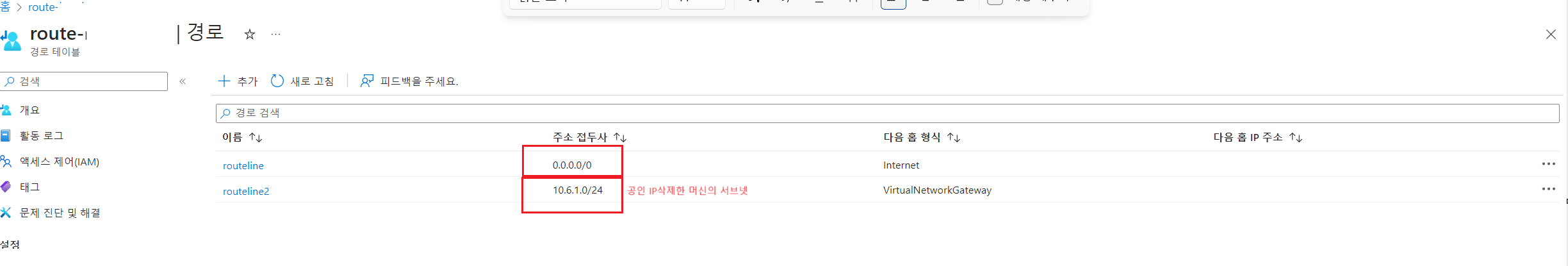 라우트 테이블은 전체 한쪽으로 나가게 설정하는거니 그거 아니면 설정하지 말길.