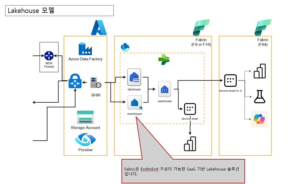 - 즉, Data Engineering, Data Factory, Power BI, Data Science, Real-time Analytics가 동일한 리소스 풀에서 동작합니다.