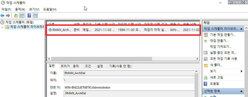 OS환경 : Windows Server 2019 Pro (64bit) DB 환경 : Oracle Database 19.3.0.0 방법 : 오라클 19c Windows 환경에서 아카이브 로그 정리 방법(archive log) 윈도우 환경에서 rman 을 이용해 아카이브 로그파일을 정리하는