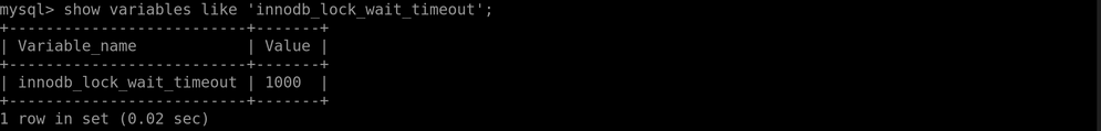 SHOW VARIABLES LIKE ‘innodb_lock_wait_timeout’;
