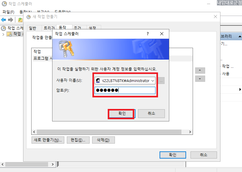 시작 - 검색 - 스케줄러 검색해서 작업 스케줄러 실행