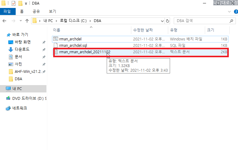 오라클 19c 윈도우 환경에서 아카이브 로그 정리 방법(archive log)