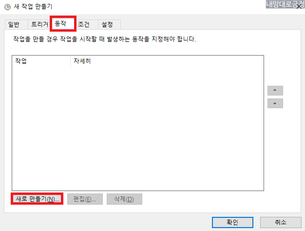 작업 스케줄러 우클릭 - 작업 만들기 실행