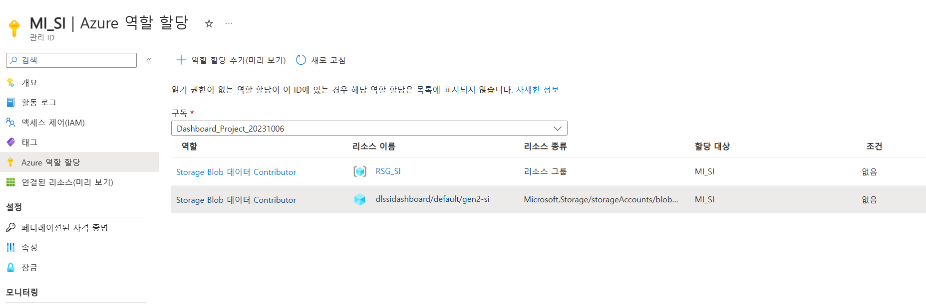 1. 관리 ID 생성.