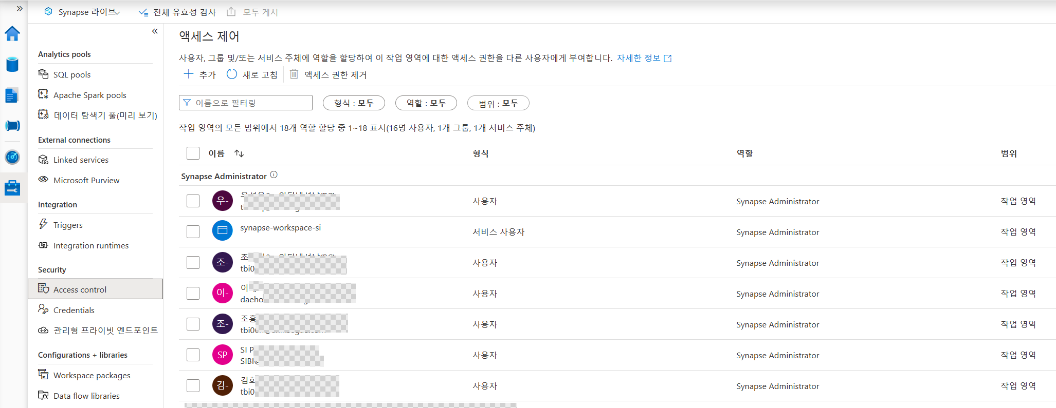 Synapse 작업 영역에서 액세스 제어 방법 - Azure Synapse Analytics | Microsoft Learn