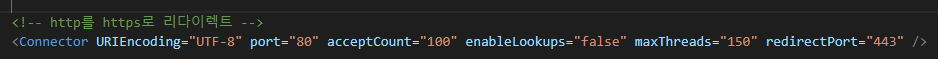 <Connector URIEncoding="UTF-8" port="80" acceptCount="100" enableLookups="false" maxThreads="150" redirectPort="443" />