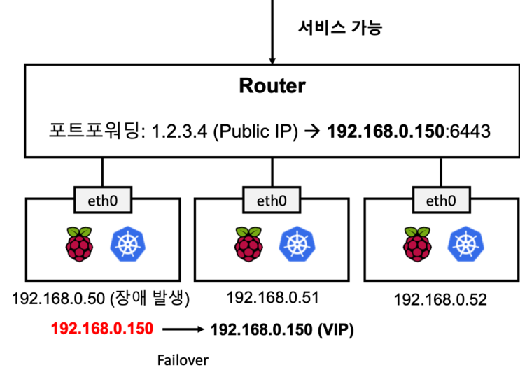 얼마 전에 남아도는 라즈베리파이에 쿠버네티스를 올려서 HomeLab을 구축해 사용하고 있다. 음악 스트리밍 서비스를 올려서 아이폰에서 잘 쓰고는 있지만.. iptime 공유기에서 특정 라즈베리파이의 IP로 포트포워딩 했기 때문에, 해당 라즈베리파이가 고장날 경우 서비스가 불가능한 상황이 발생할 수 있었다. 대학원 시절 라즈베리파이가 갑자기 고장나는 것을 몇 번 겪었기 때문에, 가능하면 HA나 Failover 대책을 세워두고 싶었다.