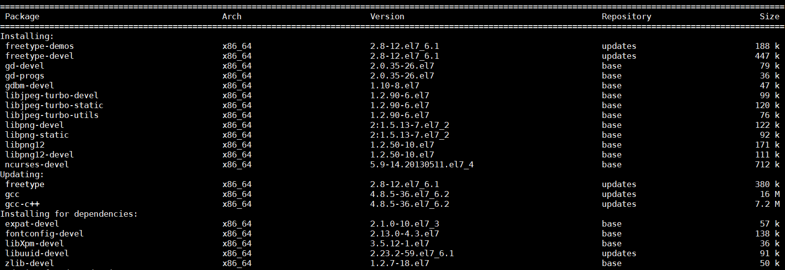 * rpm -qa libjpeg* libpng* freetype* gd-* gcc gcc-c++ gdbm-devel libtermcap-devel