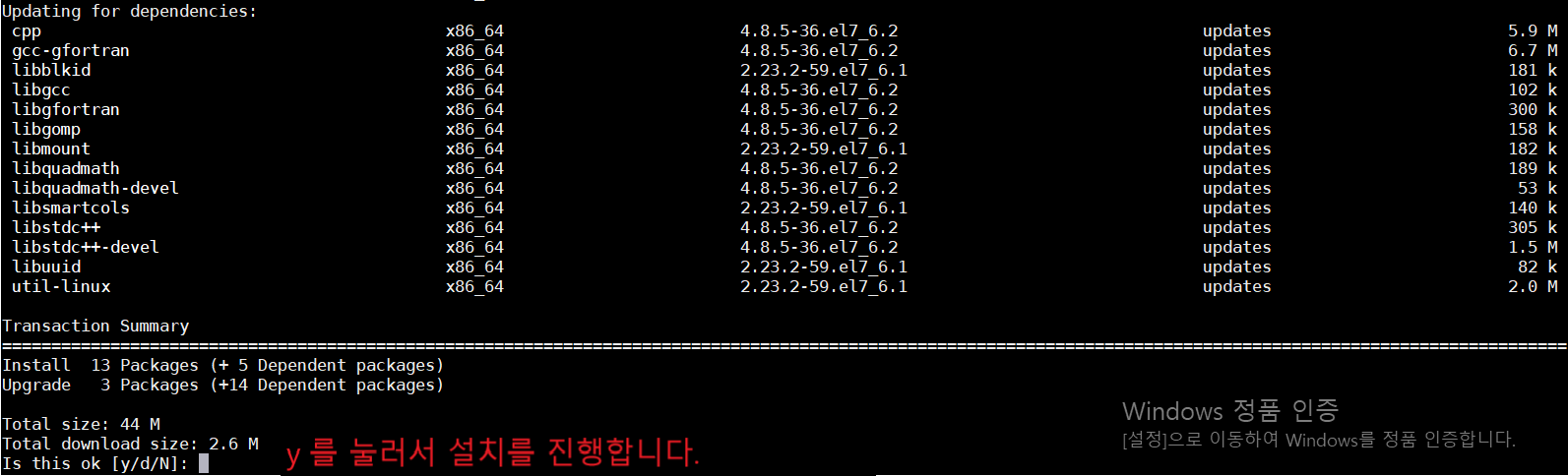 y를 눌러서 설치를 진행합니다.