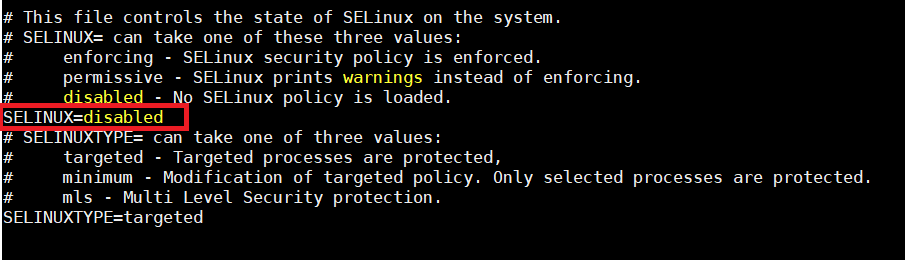 vi /etc/sysconfig/selinux 편집기로 수정합니다.