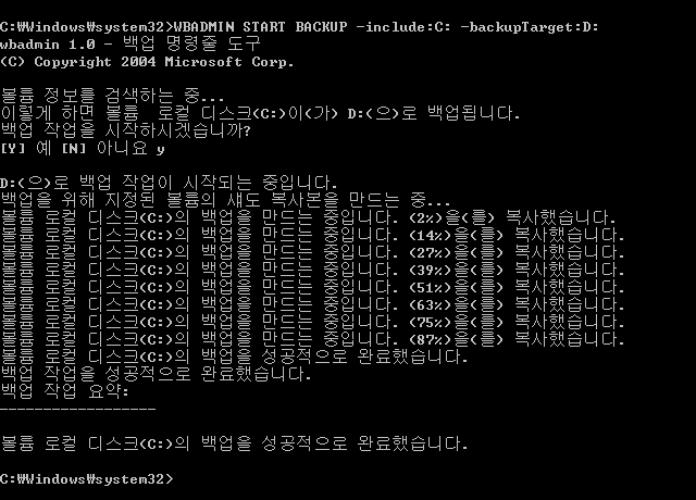 윈도우 7 wbadmin 명령어로 시스템 이미지 백업하기