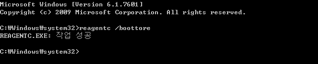 F8 복구모드가 정상적으로 구성되어 있는 경우, 아래 명령어를 입력하시면 다음 부팅시 자동으로 복구모드로 들어가게 됩니다.