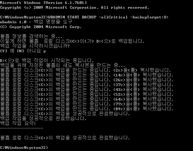 윈도우 7 wbadmin 명령어로 시스템 이미지 백업하기