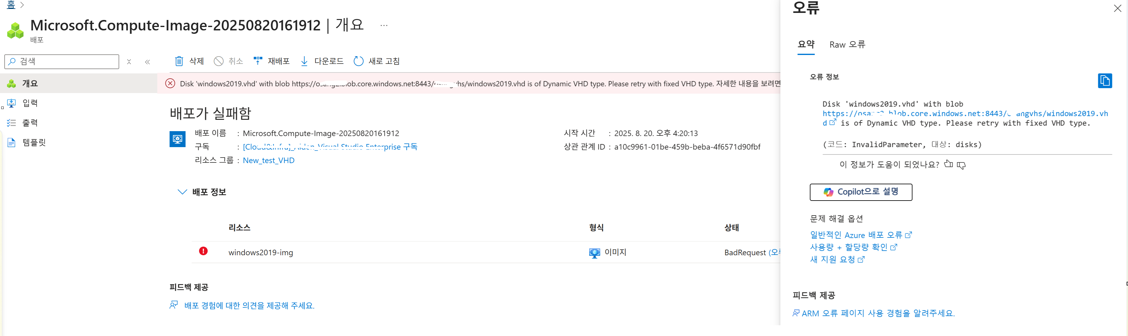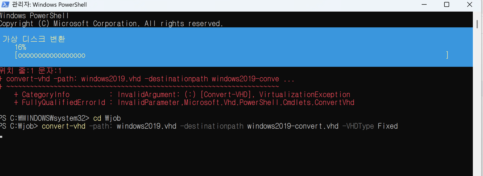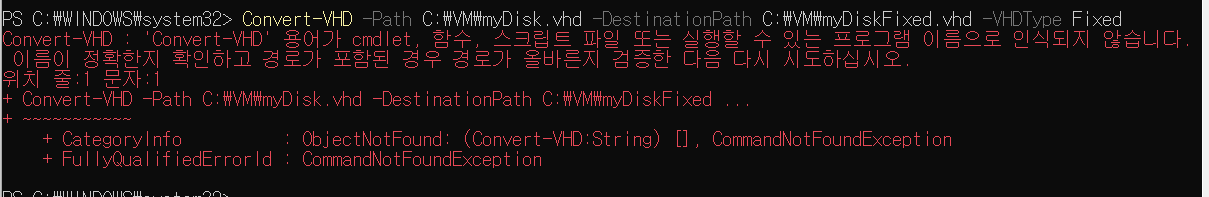 - VHD 는 동적 VHD 유형이기에 고정 VHD 유형으로 컨버팅 진행해줘야 한다.