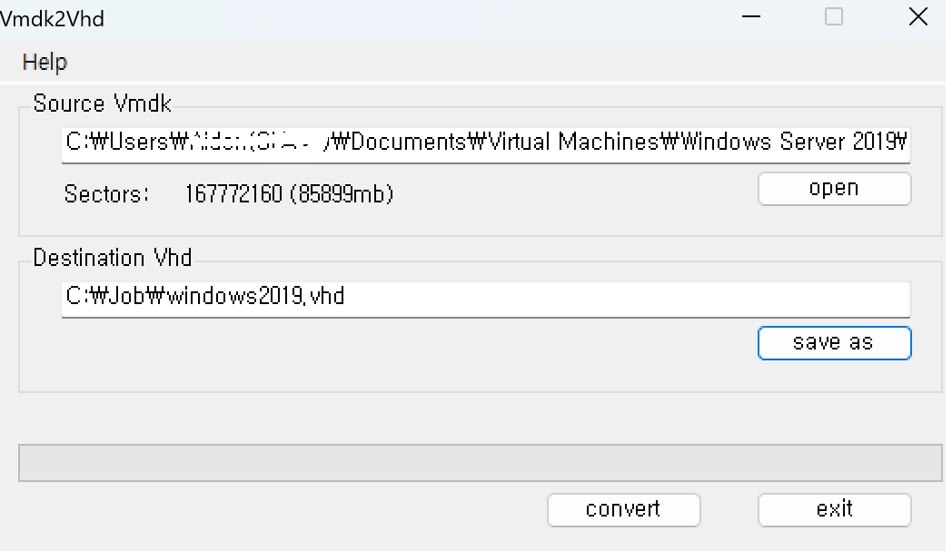 Vmdk2Vhd.exe 를 이용해서 VHD 로 변경.