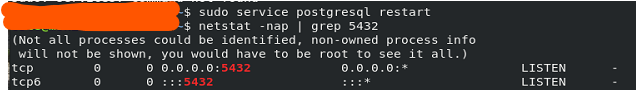 - sudo service postgresql restart