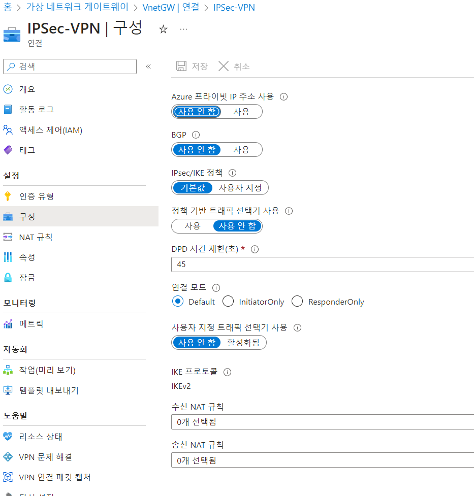 3. [가상 네트워크 게이트웨이] -> [연결]