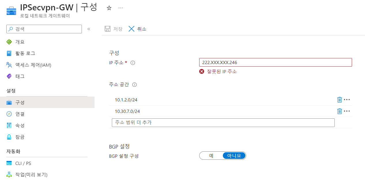 GW IP : [가상네트워크 게이트웨이] IP : XXX.XXX.XXX.XXX