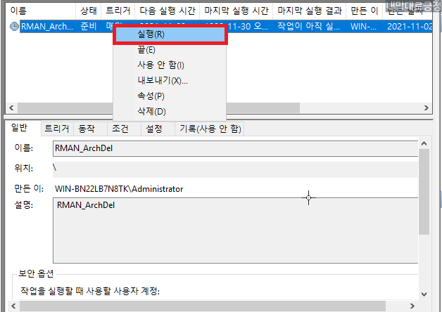 방법 : 오라클 19c Windows 환경에서 아카이브 로그 정리 방법(archive log)