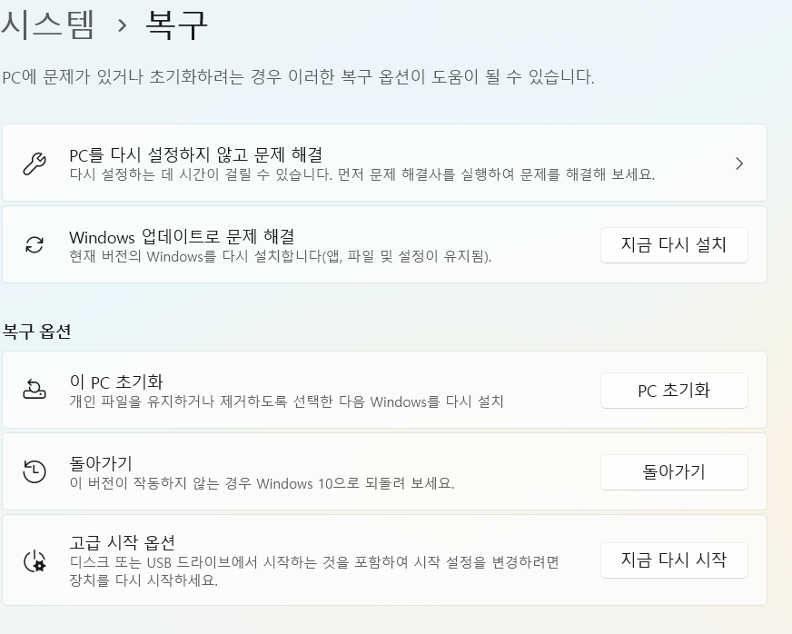 Windows 11 -> Windows 10 다운그래이드