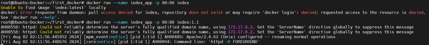 root@Ubuntu-Docker:~/first_docker# docker run --name original_httpd -p 80:80 httpd