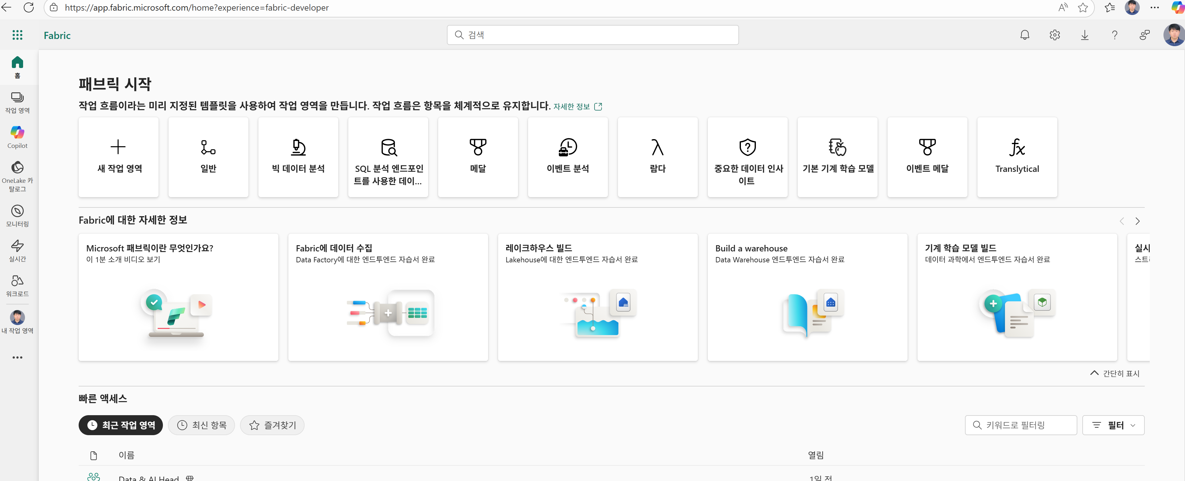 # Fabric 접근 화면.